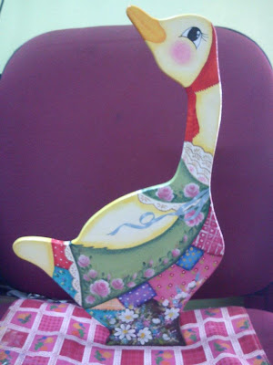 So far I've painted 3 Mother Gooses. First one requested by Sada, 2nd and 3rd for Kak Jelina, Klang. There was no color painted at the back side of the first 2, as I thought just the front would be viewed and the other side facing the door, only some flowers to touch-up all the comot-comot here and there. But for 3rd, I'd painted simple Goosey at the back, looked nicer...